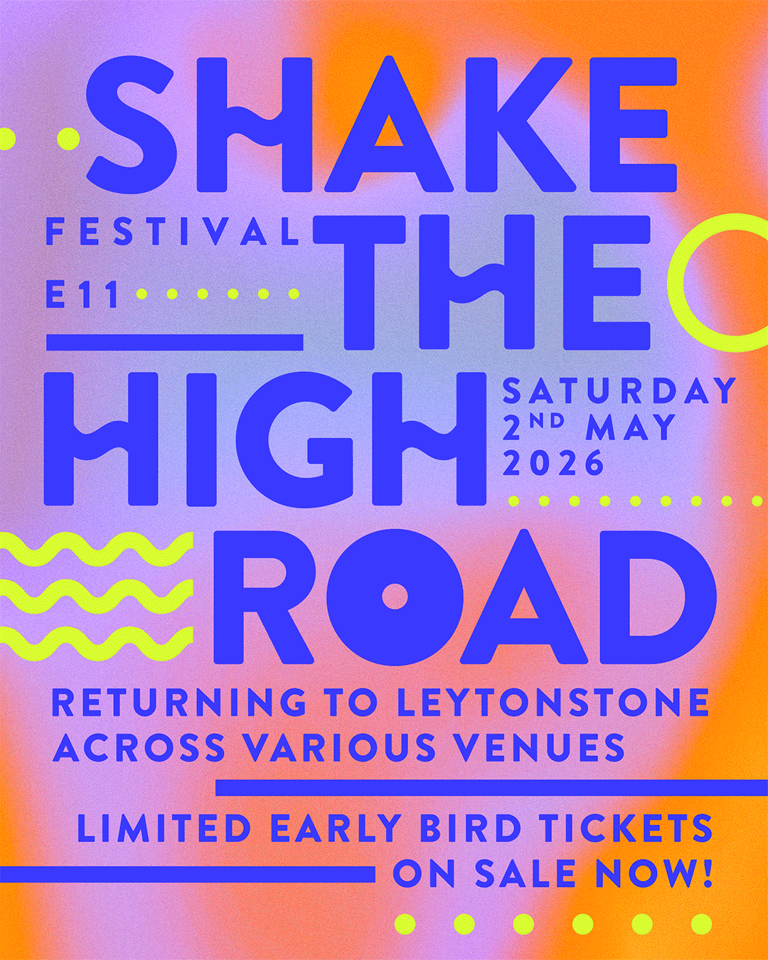 Leytonstone’s all-day music and arts festival returns for its 5th Birthday! Featuring 20+ live artists and DJs, as well as special talks and interviews, scheduled all day and into the night across venues all within a one minute walk! We'll be announcing our first acts and venues in early February.
